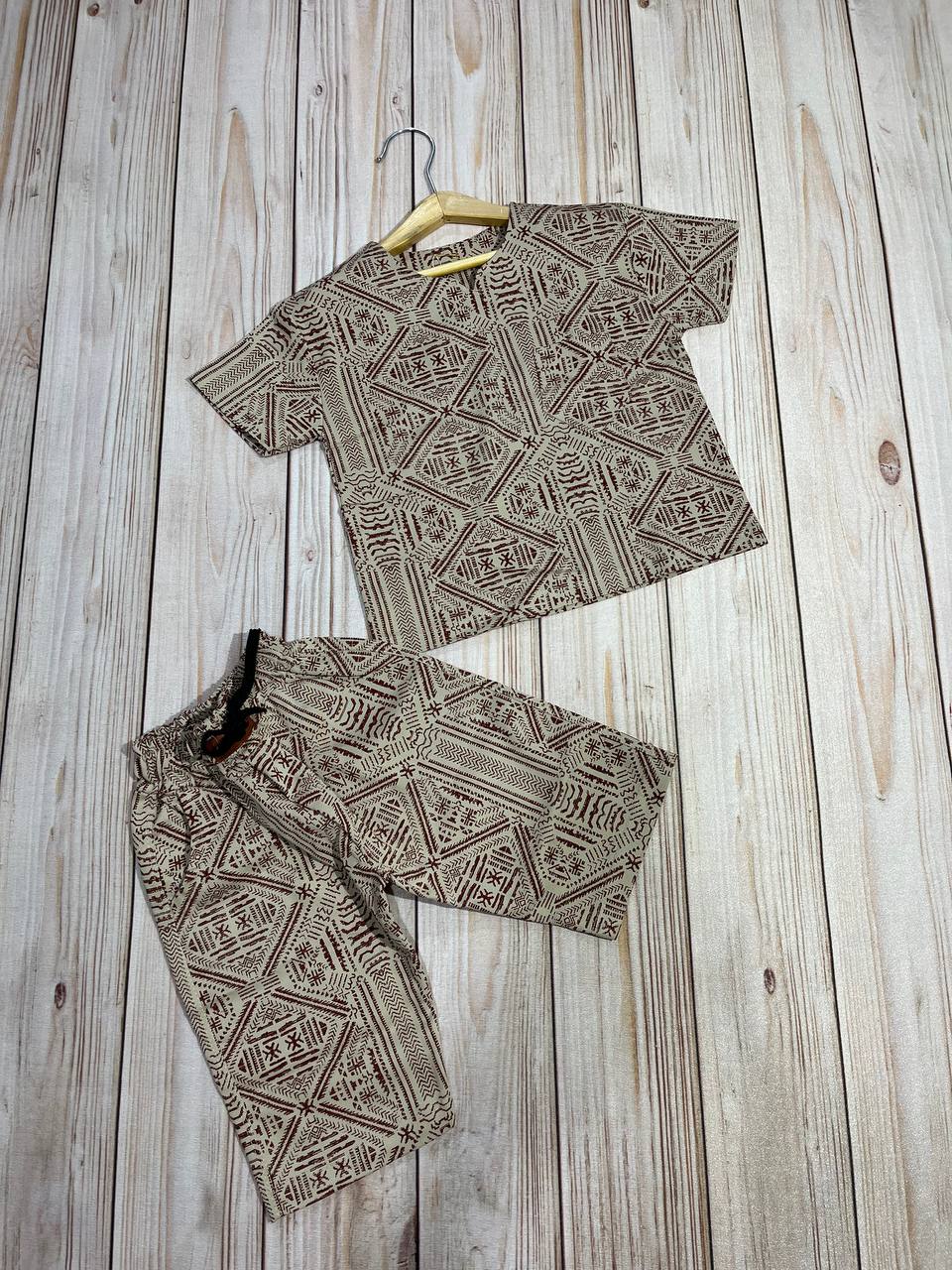 ست تیشرت و شلوارک یقه کوبایی بچگانه مناسب سنین 2 تا 9 سال