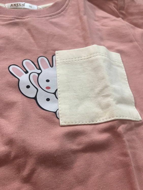 جزئیات: یقه گرد همراه چاپ کنار جیب