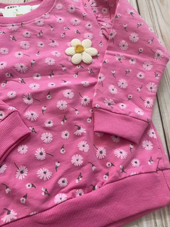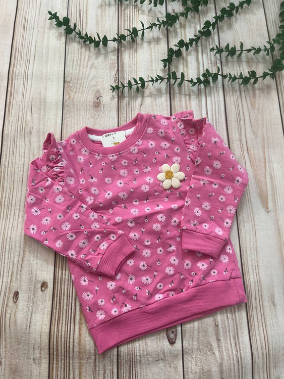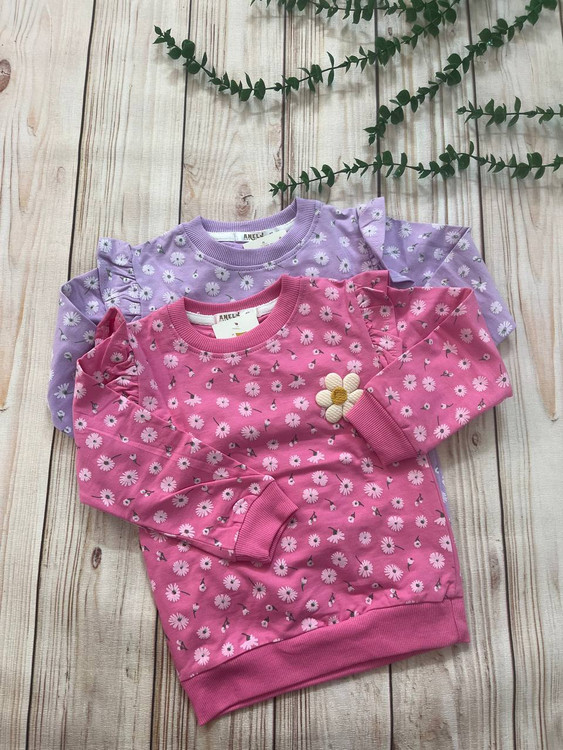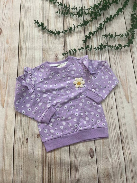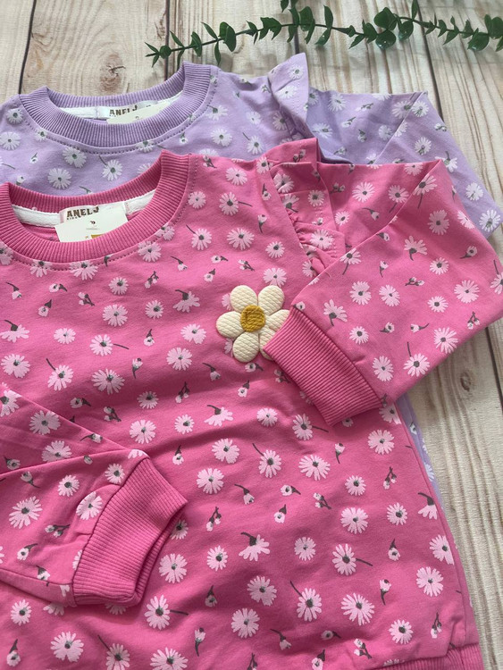 یقه گرد همراه با چاپ بابونه و آستین چین دار