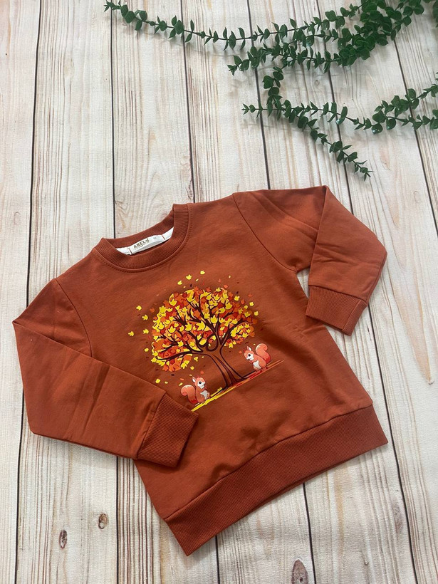 بلوز طرح سنجاب و درخت پاییزی مناسی سنین 2 تا 9 سال