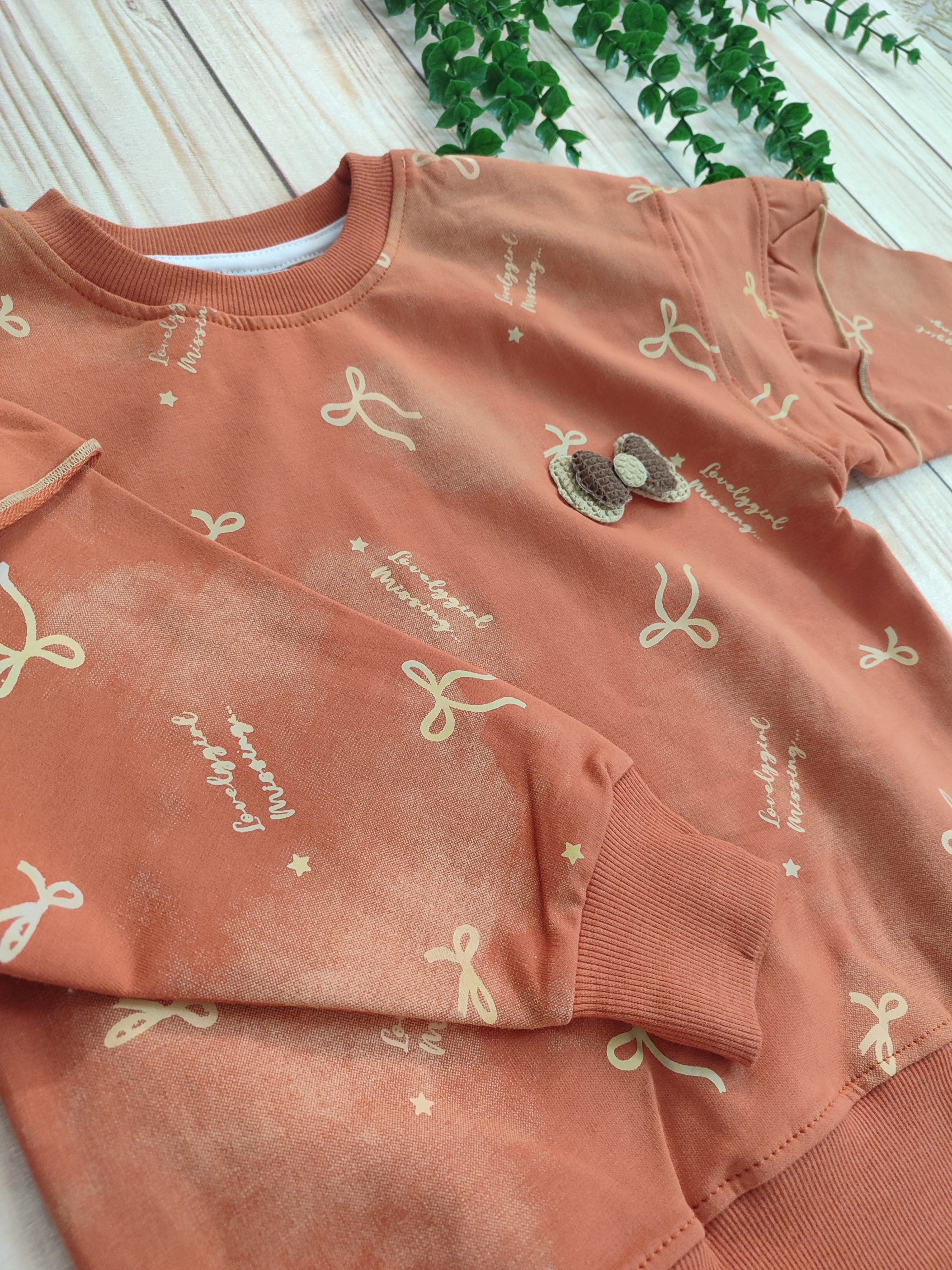 جزئیات: پشت و رو چاپ طرح پاپیون و آستین چین دار