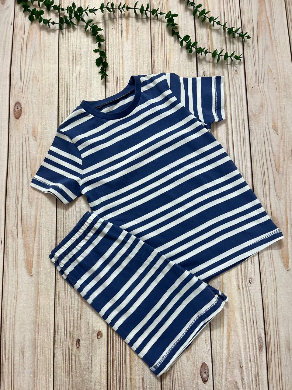ست تیشرت وشورتک پسرانه مدل راه راه نخ پنبه مناسب سنین 6 و 7 سال