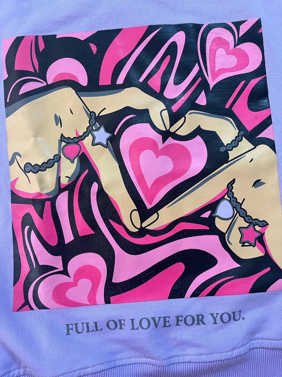 جزئیات : یقه گرد با آستین فینگردار همراه با چاپ زول قلبی